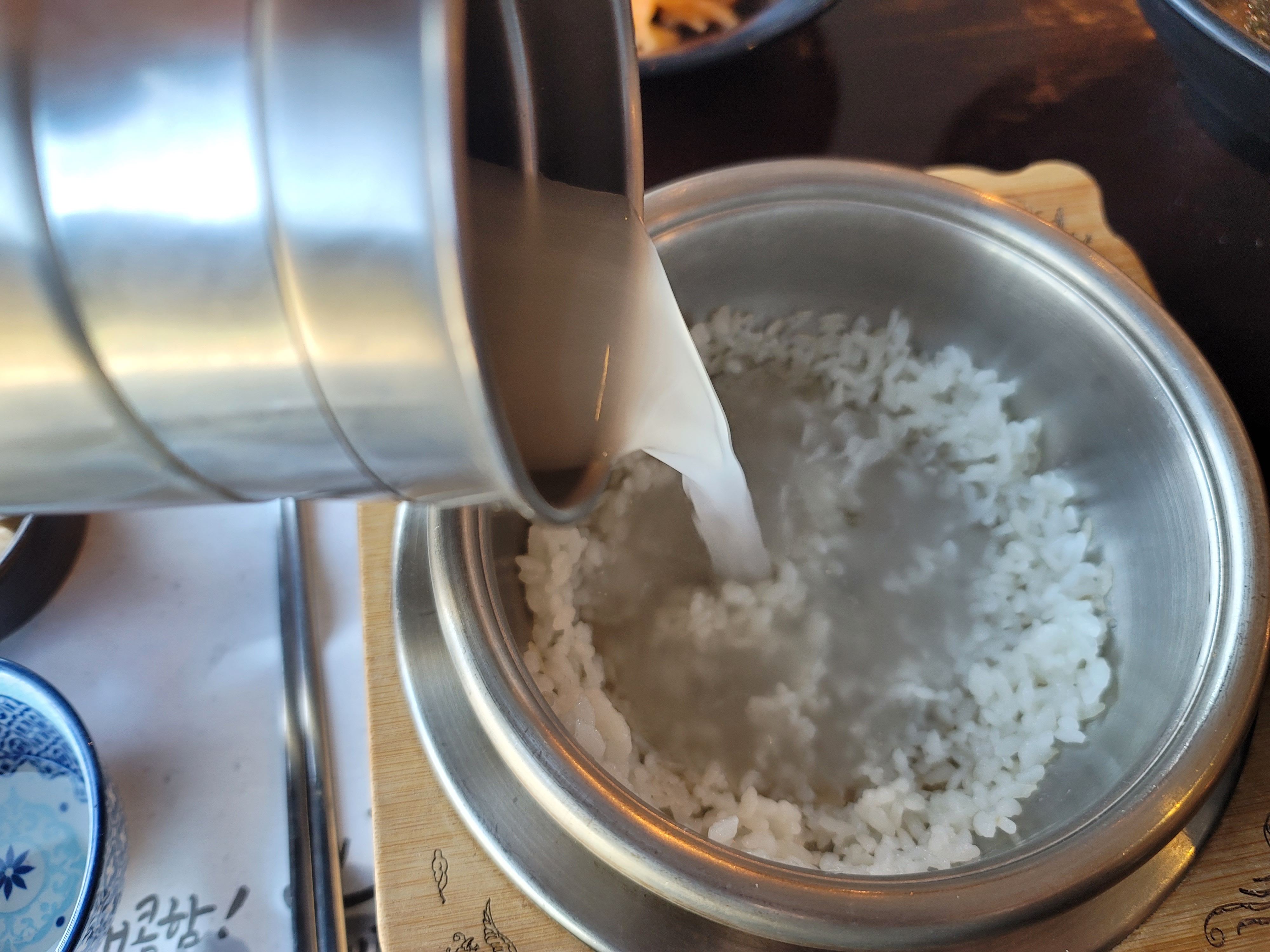 숭늉을 부어주고 덜어놓은 밥에