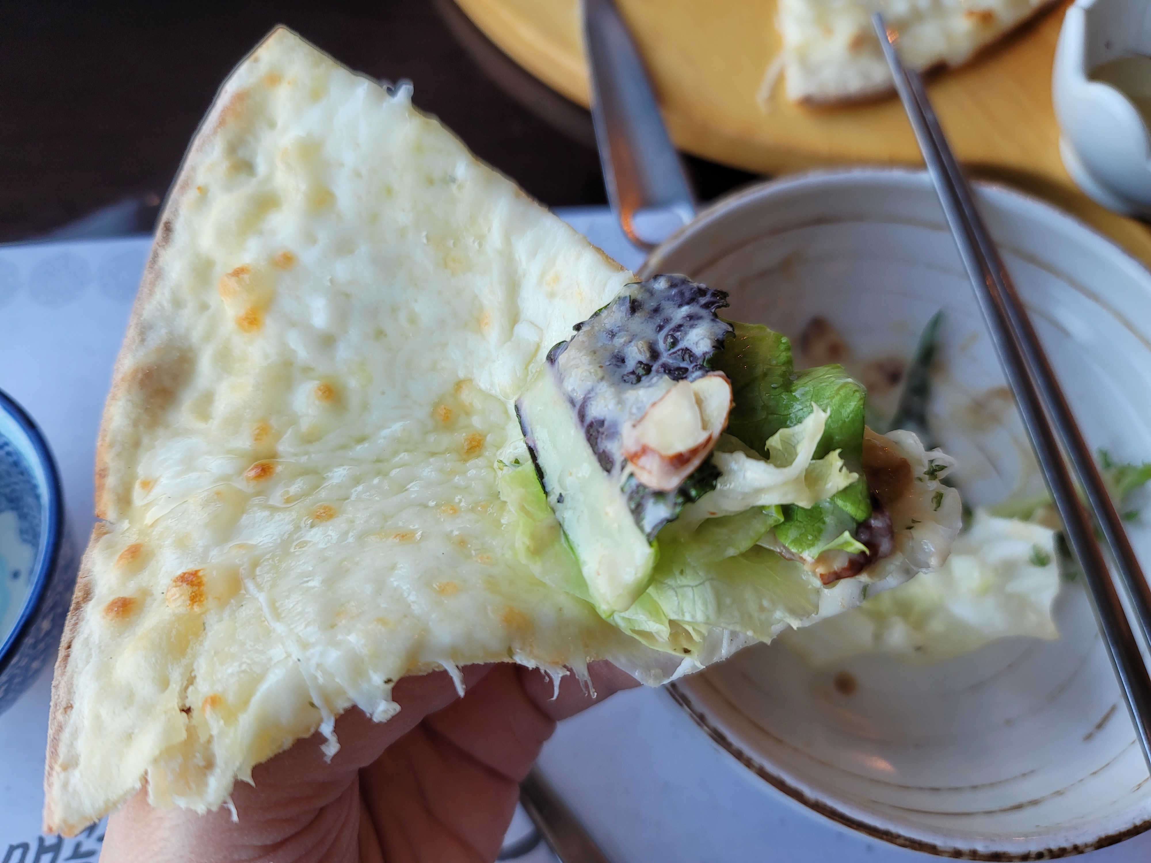 샐러드가 나온 뒤 피자가 나왔어요ㅎㅎㅎ