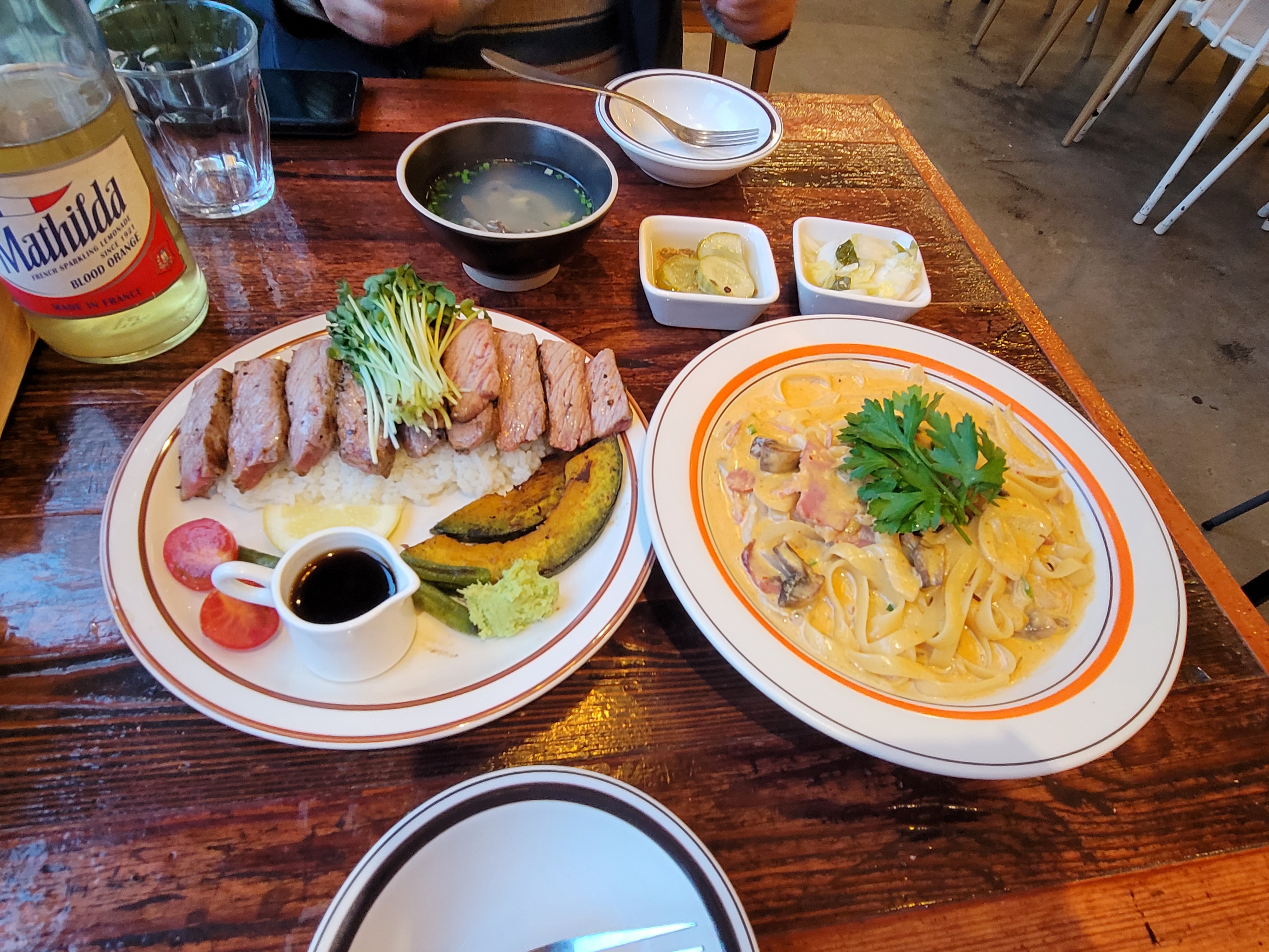 스테이크덮밥과 투움바파스타가